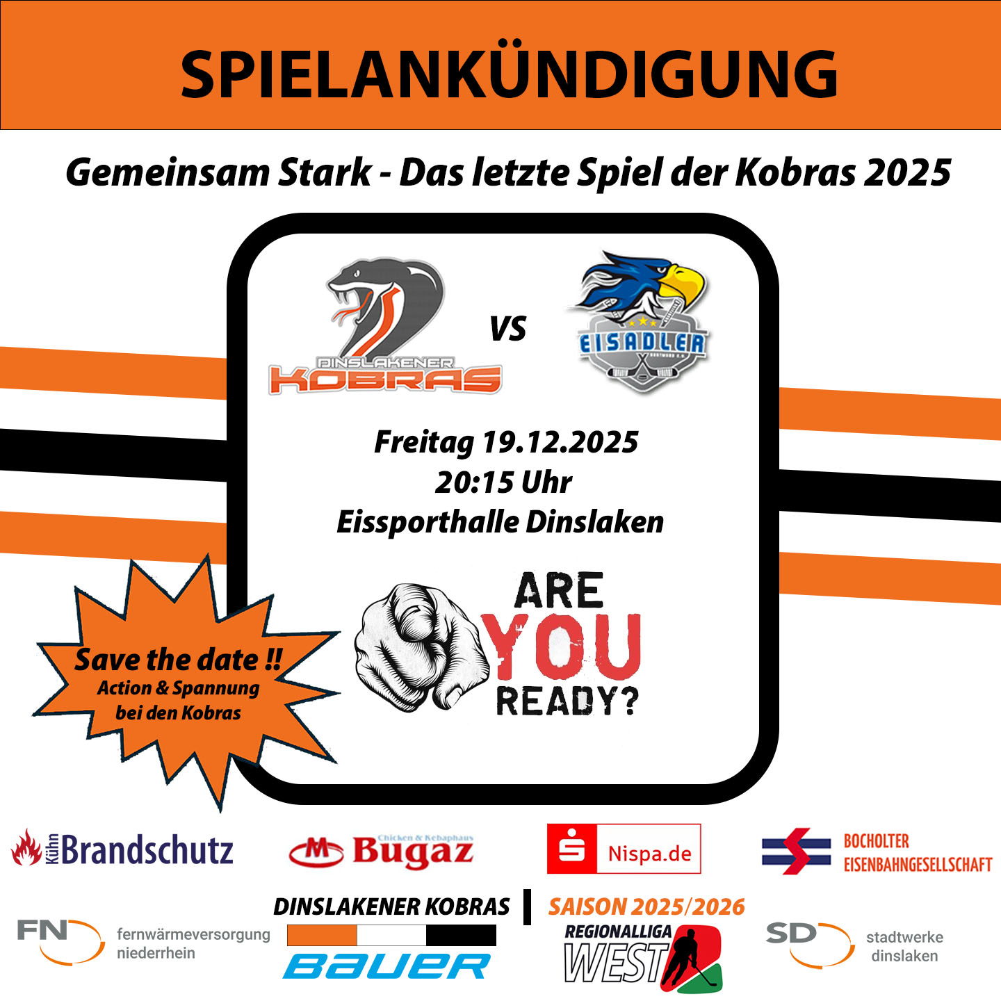 Mit einem engagierten Auftritt und der lautstarken Unterstützung von den Rängen wollen die Kobras das Jahr 2025 positiv abschließen – und den Favoriten aus Dortmund ordentlich fordern.