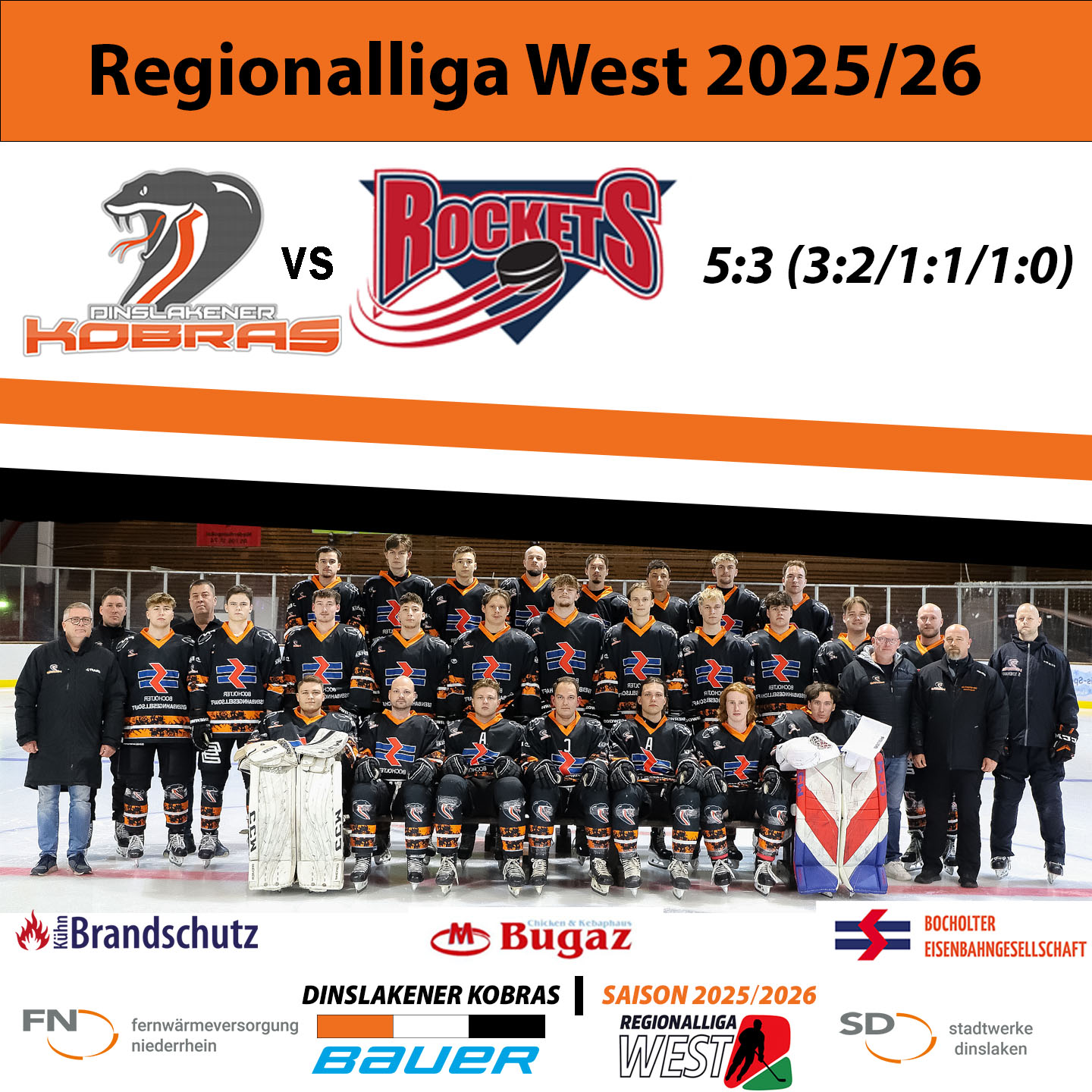 Auch in der Folge behielten die Kobras die Nerven: Die Rockets erzielten zwar im Mittelabschnitt noch einmal den Ausgleich, doch erneut war es Nils Nemec, der eiskalt zuschlug und die Kobras wieder in Front brachte. Im Schlussdrittel verteidigte Dinslaken mit enormer Disziplin und setzte durch Nick Kardas den Deckel drauf.